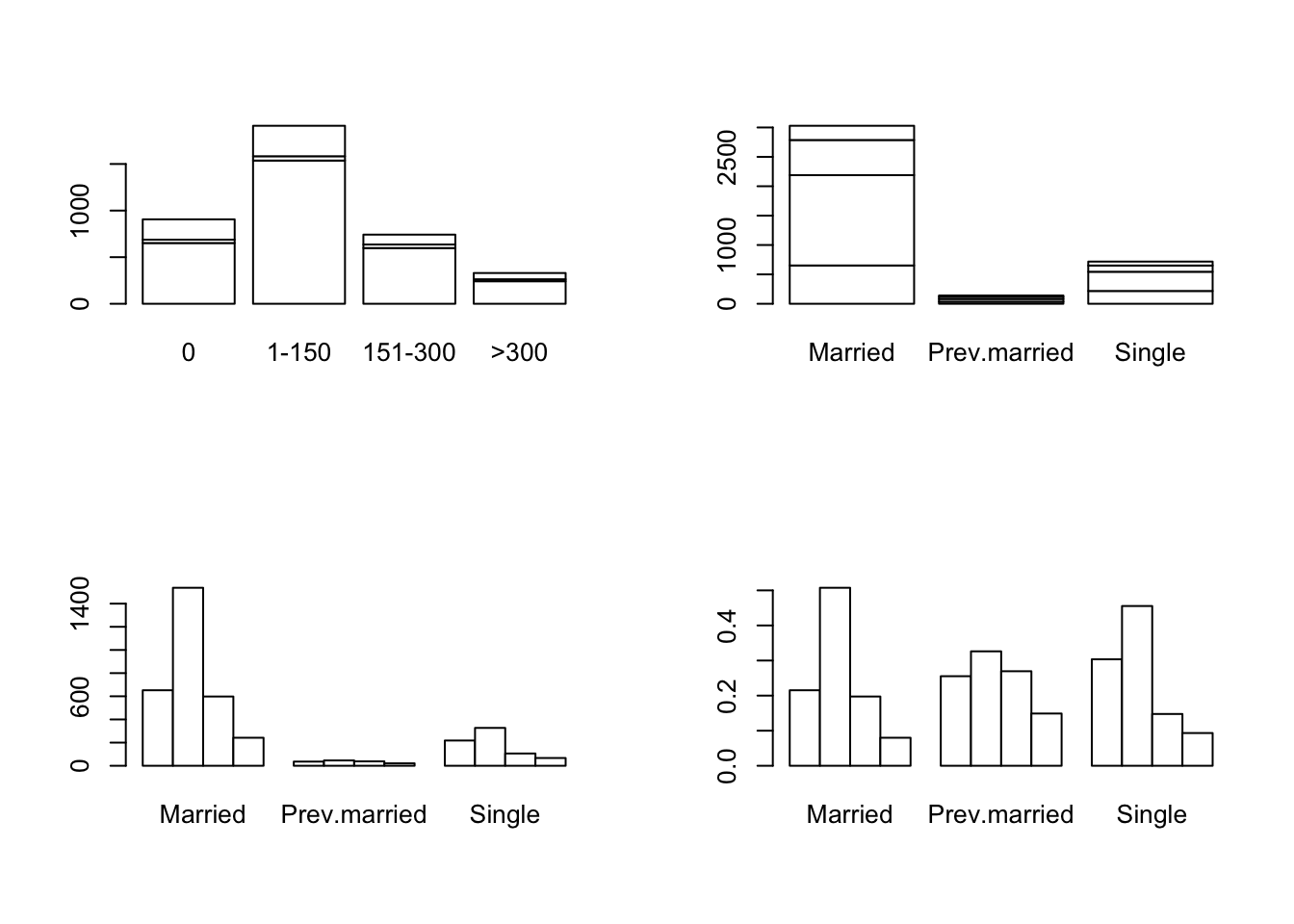 barplot(t(caff.marital), col="white")